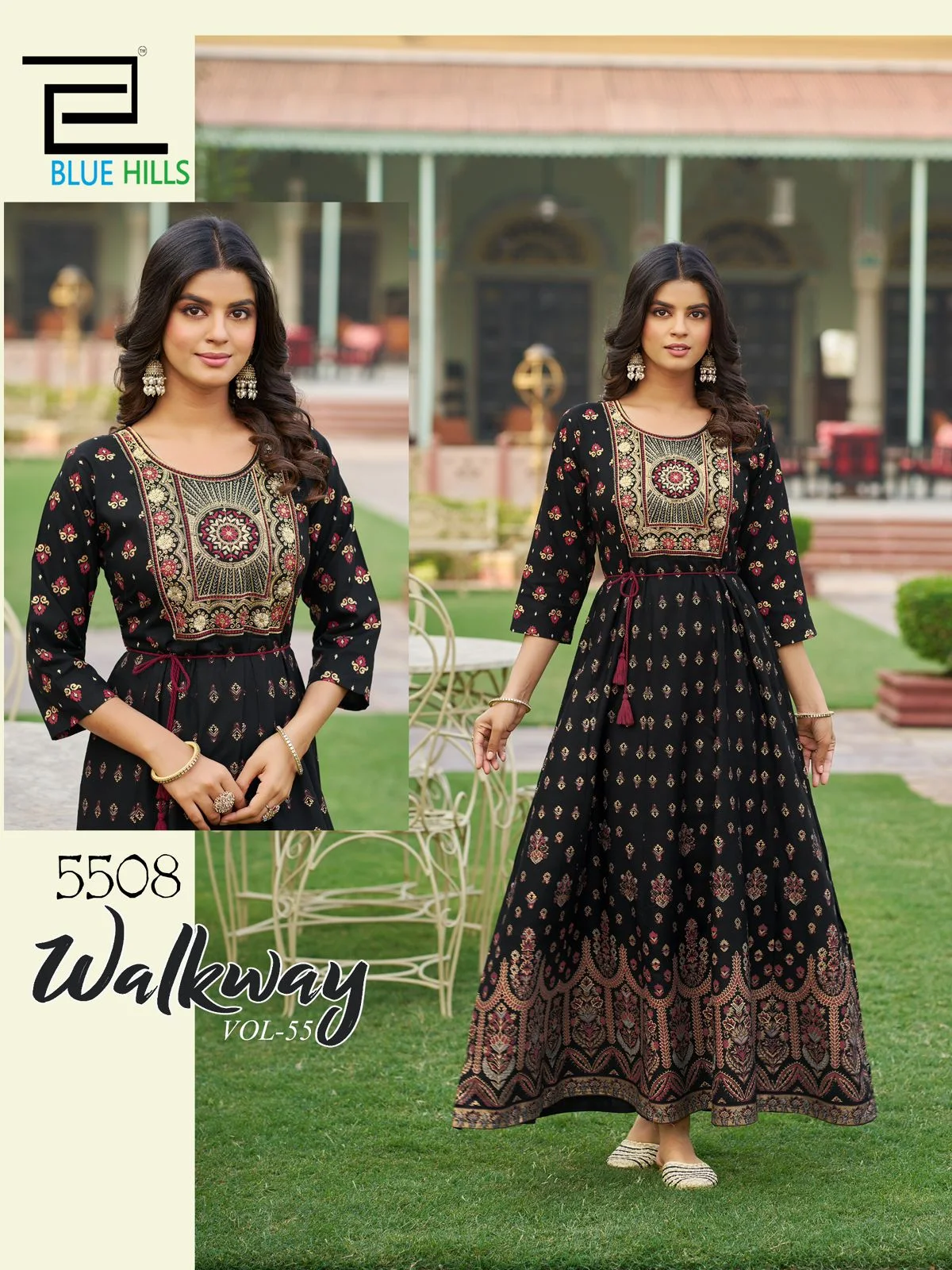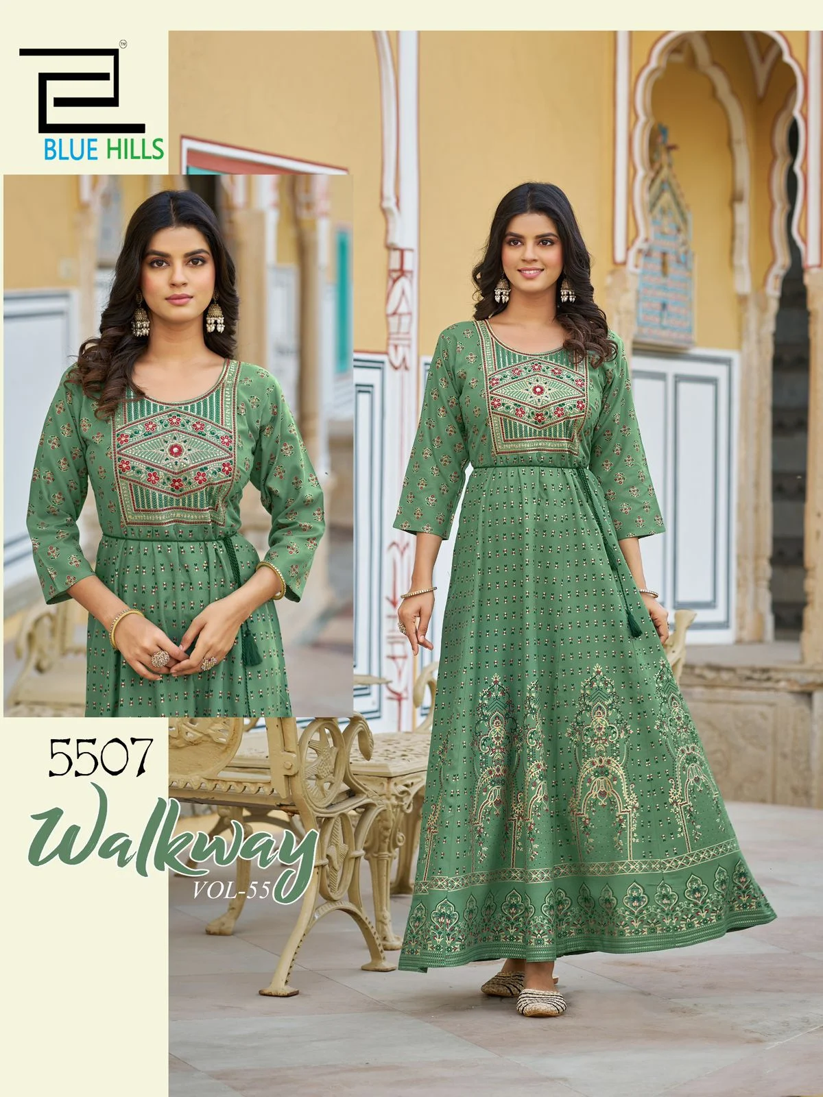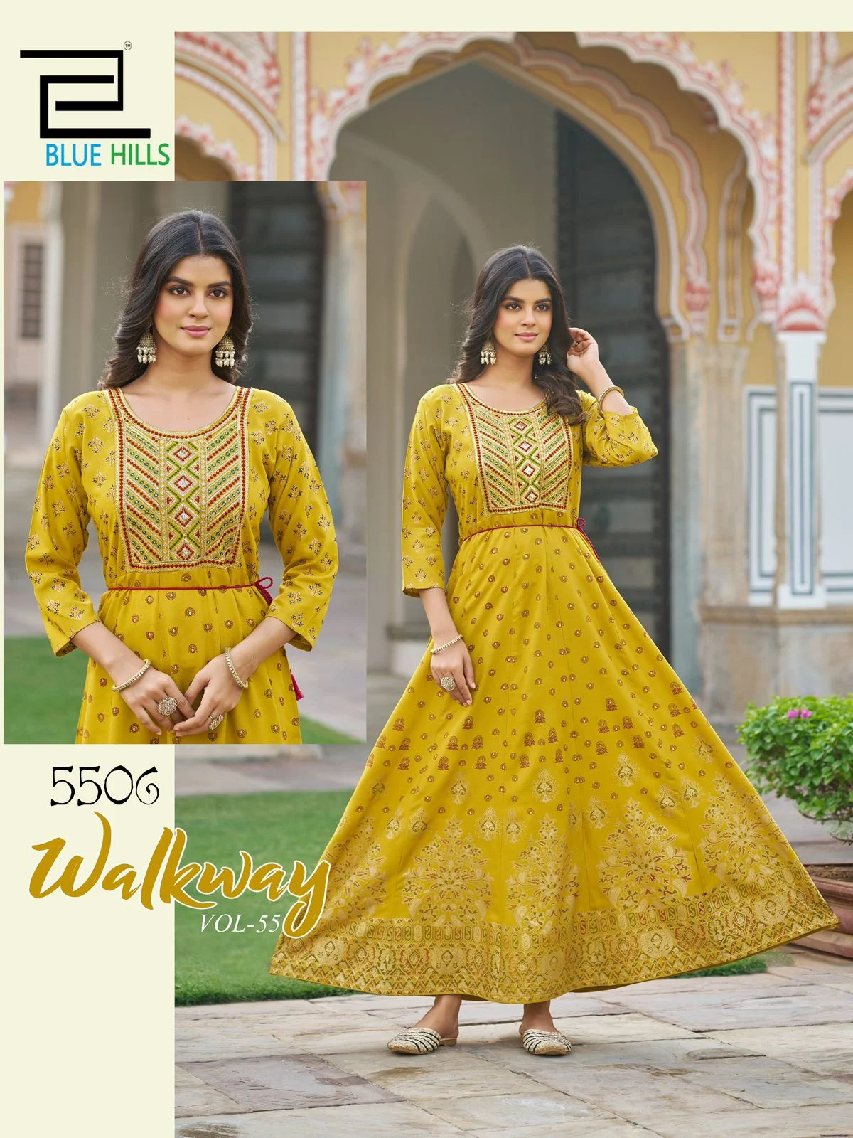 PATTERN : ANARKALI GOWN WITH CLASSIC NECK EMBROIDERY BELT